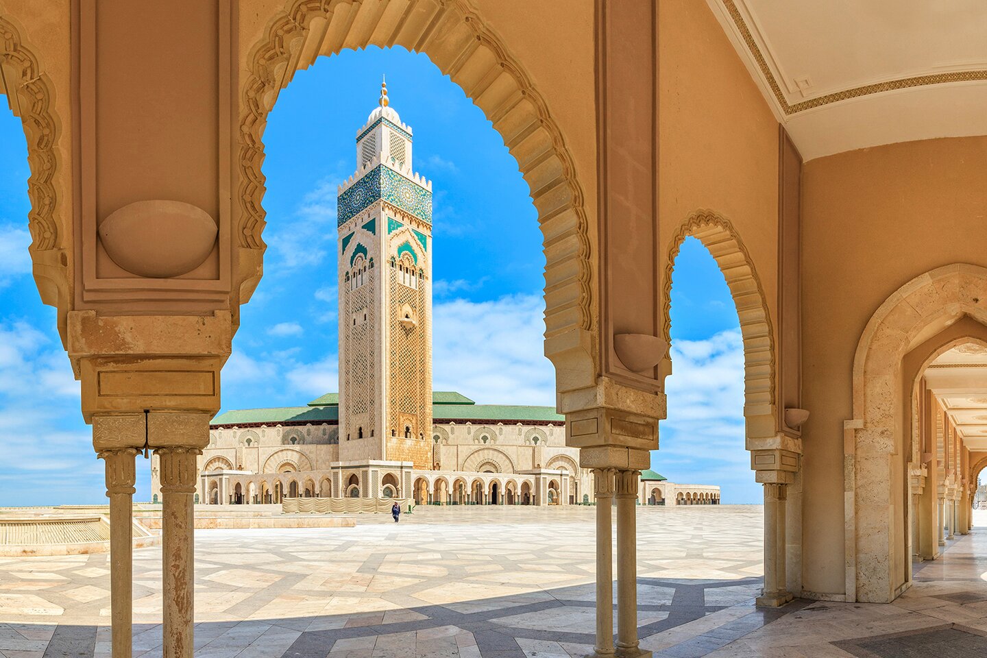 Modern life and historic charm go hand in hand in Casablanca. The lively metropolis is Morocco’s economic centre and offers an exciting mix of Arab or Muslim heritage and remnants from the French colonial period. The old town, also known as the medina, is inviting with its winding streets and numerous bazaars to wander around, while the art deco district and the Corniche promenade show the city’s modern side. At the end of the Corniche, you will see the majestic Hassan II Mosque and its minaret rising about 210 m (689 ft) into the blue sky: one of the largest mosques in the world, its architectural beauty and the glorious marble of the huge prayer hall are impressive.