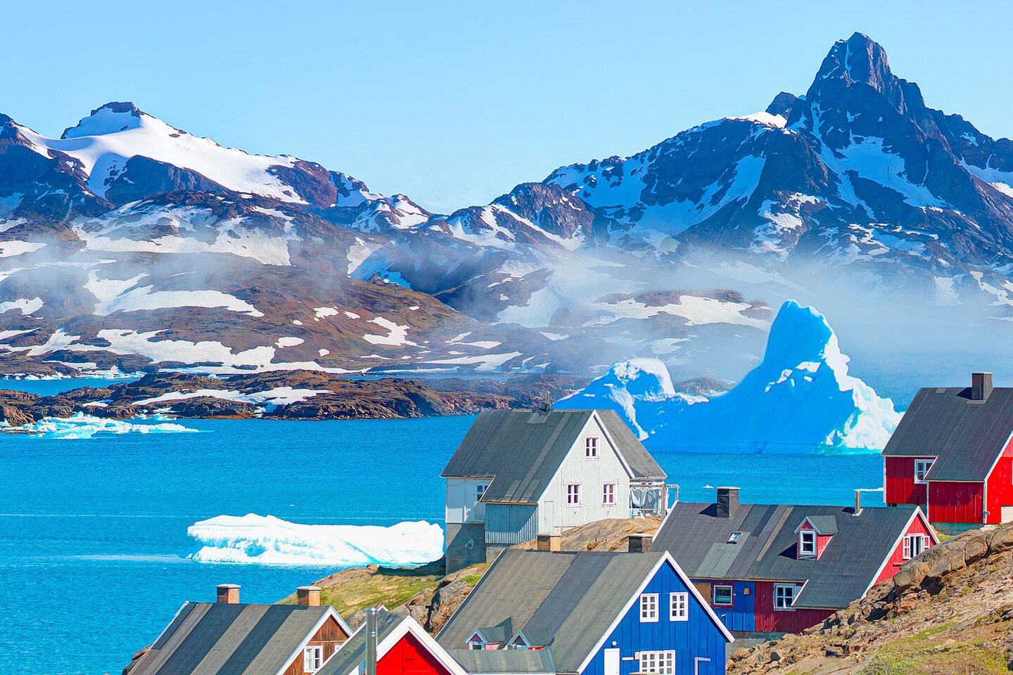 Tasiilaq is located on the east coast of Greenland and is the largest settlement in the region. Surrounded by high mountains, deep-blue fjords and glaciers, it is a good starting point for exploring Arctic nature. The colourful houses at the harbour characterise the town’s appearance, while the locals’ boats dominate everyday life. Even today, the Inuit still practise traditional crafts such as knitting and carving, passing on their culture and customs to future generations. Set off on hikes along the fjords or experience the impressive landscape up close on kayaking tours amidst the icebergs.