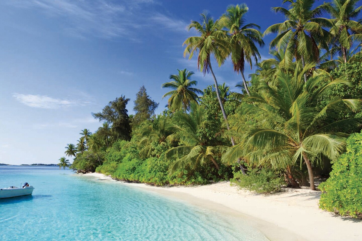 Countless palm trees and surrounded by a wide sandy beach and crystal-clear water. Enjoy some wonderfully relaxing hours in the natural paradise of the Maldives just as you wish. Stroll along the fine sand, go for a swim in the pleasantly warm sea or simply unwind on the beach. The reefs and lagoons are home to a colourful underwater world that you can explore while snorkelling.