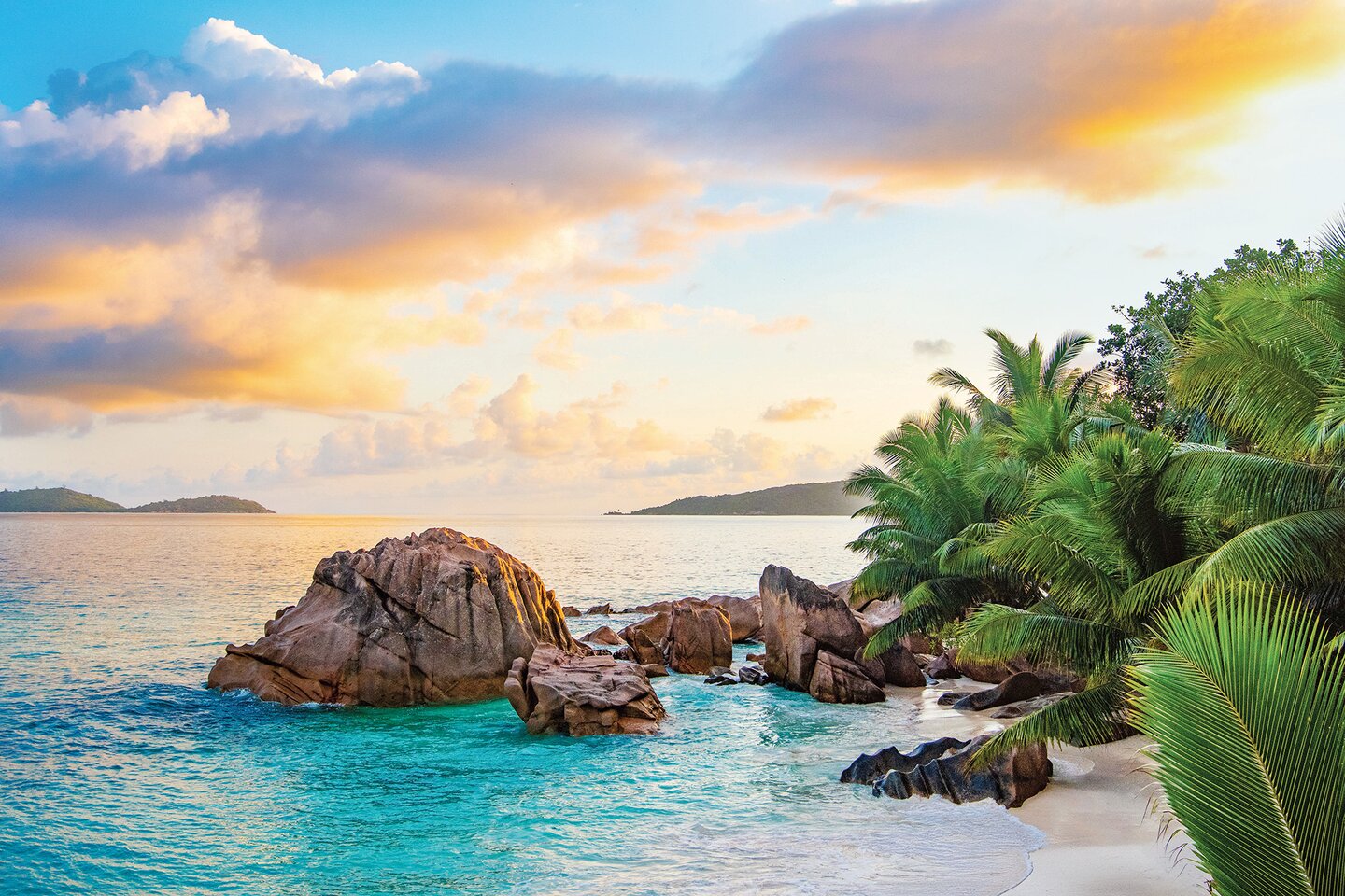 La Digue, the fourth-largest island in the Seychelles, is legendary for its relaxed atmosphere and imposing granite cliffs: the colossal rounded rocks are particularly impressive at the idyllic Anse Source d’Argent, which is perfect for bathing thanks to its shallow turquoise waters. There are hardly any cars on La Digue and most people use bicycles to get around. It’s a great way to explore the island and its hidden wild beaches in the north. In the south of the island is the L’Union Estate, a former plantation estate, which provides insights into the traditional trades of the island and is home to two extremely rare species of terrapin.