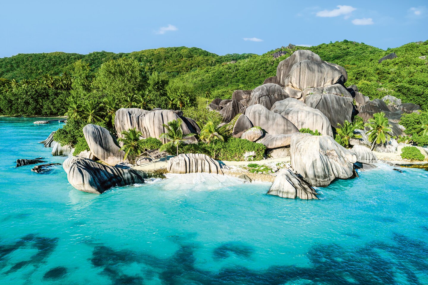 La Digue, the fourth-largest island in the Seychelles, is legendary for its relaxed atmosphere and imposing granite cliffs: the colossal rounded rocks are particularly impressive at the idyllic Anse Source d’Argent, which is perfect for bathing thanks to its shallow turquoise waters. There are hardly any cars on La Digue and most people use bicycles to get around. It’s a great way to explore the island and its hidden wild beaches in the north. In the south of the island is the L’Union Estate, a former plantation estate, which provides insights into the traditional trades of the island and is home to two extremely rare species of terrapin.