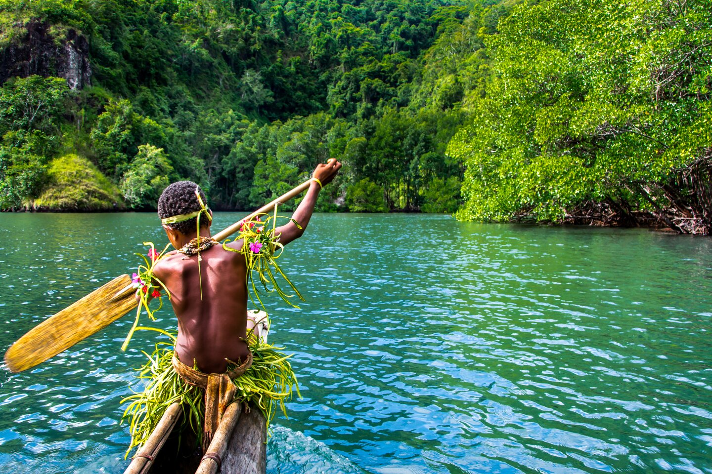 On a Zodiac landing on the beach of Santa Ana Island, you will be treated to an impressive welcome ceremony by “warriors” with spears. The islanders’ traditions are also reflected in their villages, which you will explore alongside your experts. Discover what life is like below sea level when snorkelling in the colourful coral reefs. The diverse wonders of creation are also on show in the lush jungle.