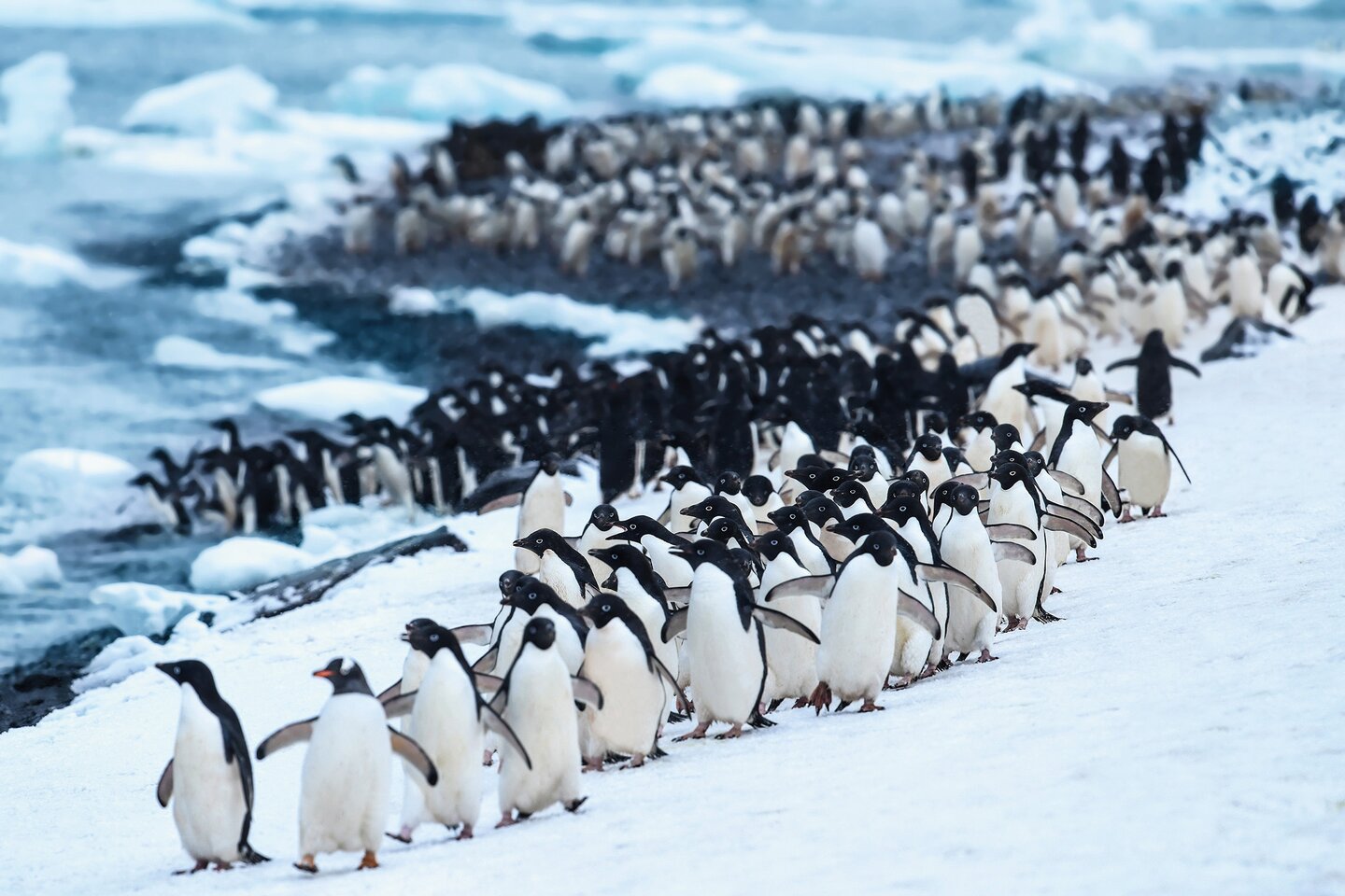 The Antarctic Peninsula, part of the coldest continent on Earth, may seem inhospitable at first glance, but it is actually a paradise for countless animal species that have adapted perfectly. Enjoy unforgettable moments when, for example, you set foot on the Antarctic mainland near to Paradise Bay. Snow-covered peaks, imposing icebergs and towering glaciers surround you. Unbelievable views also await you in the bay of Neko Harbor with its rocky massifs. On Petermann Island, keep an eye out for gentoo and Adelie penguins and the blue-eyed cormorants that have their breeding colonies here. One of the most impressive shipping passages in the world is the Lemaire Channel: mountains up to 1,000 m (3,281 ft) high line the strait of water.