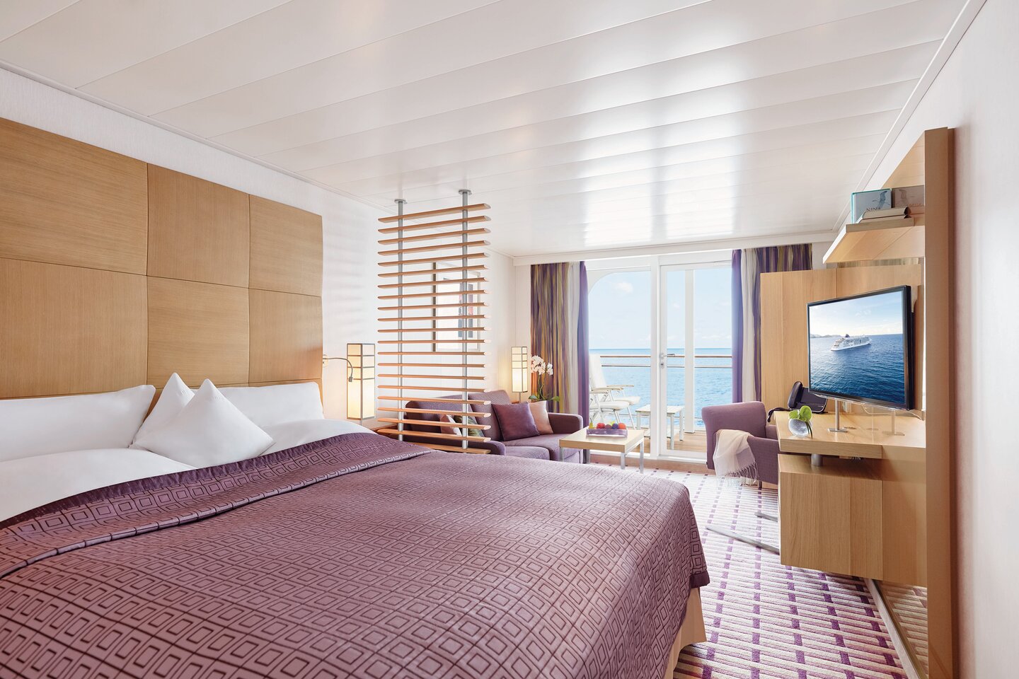 Those who like to start their day with a fantastic view will have a wonderful time in the Ocean Suite. The bathrooms in this category all provide plenty of natural light. Treat yourself to this special luxury and look out over the open ocean from your own bath.Â