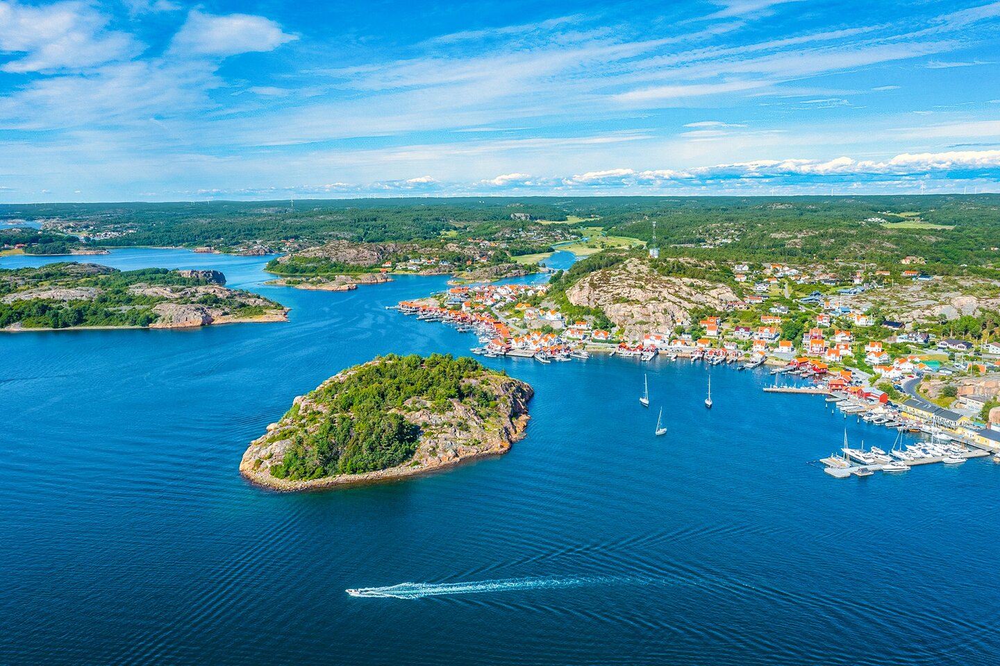 In picturesque Fjallbacka, you will feel a particularly close connection to Swedish nature. Imposing cliffs rise up into the sky behind some of the buildings, with wooden houses nestled against the rocks as if seeking protection from the wind. The dramatic setting for the crime novels by Camilla Läckberg is matched by the cinematic scenery of the surrounding nature, coupled with the charm of the small fishing village.